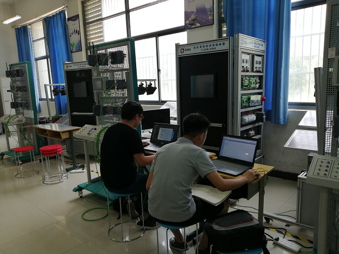在安徽职业技术学院,邓运生带领2名学生,开展中国智能制造挑战赛信息网络赛项的赛前设备调试和训练工作;在安徽工业大学,茹雪艳和涂正宏带领24名学生,开展中国智能制造挑战赛逻辑控制和过程控制赛项的赛前设备调试和训练工作。