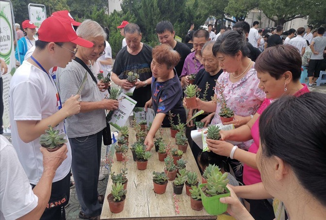 活动第一天,团队成员来到南湖社区老年活动中心摆台,向社区居民宣传环保知识,并深入社区,向社区居民赠送环保手提袋、绿色植物,及向小朋友发放笔记本。社区居民们对这项活动参与度非常高,成员们还主动发起社区保洁,不让自己留下一片垃圾。这不仅提高了团队成员的综合素质,也让社区居民切实感受到了来自绿源团队的真切问候,社区居民与团队成员彼此教育,肩负起环保责任,全面提高环境与发展意识,树立正确的环境价值观和环境道德风尚