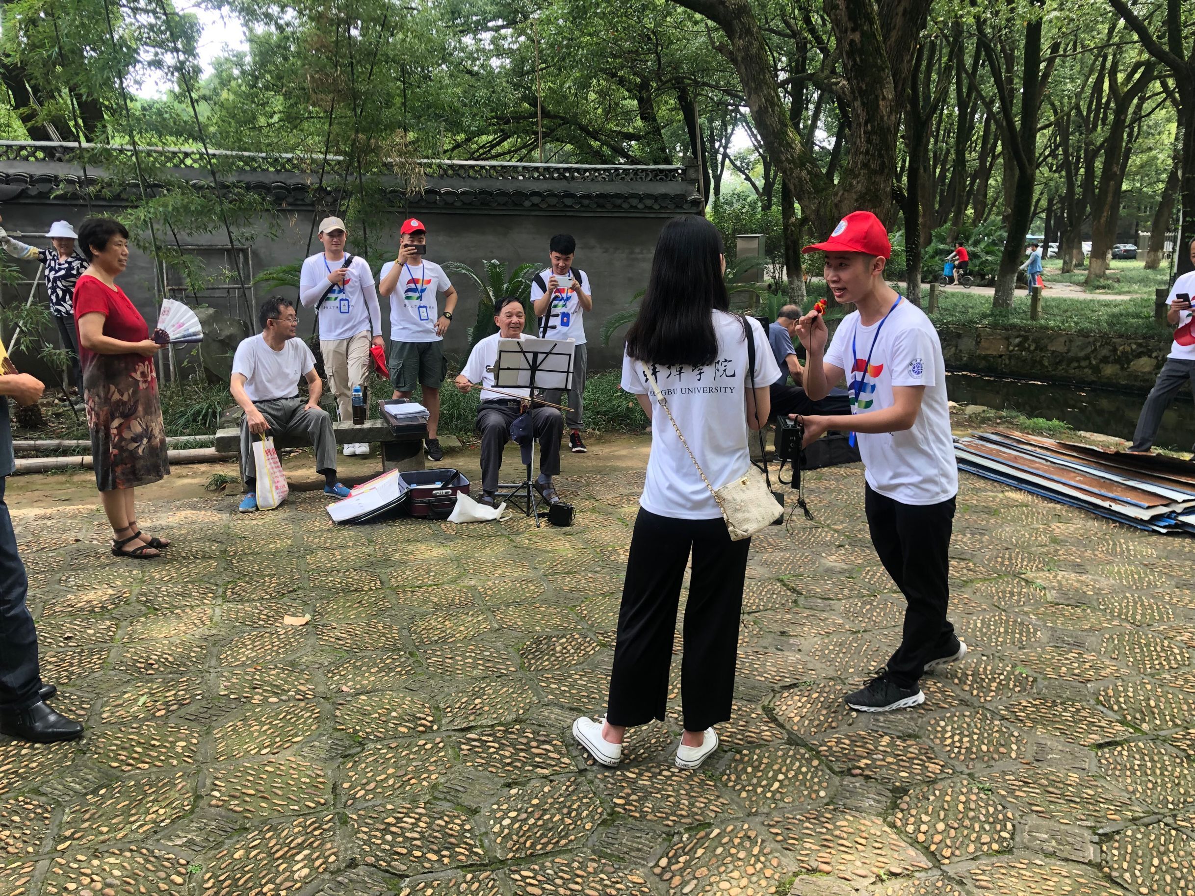 在寻访中,实践团队成员与当地黄梅戏爱好者,以现场互动的方式共同探讨黄梅戏艺术的精髓与独到之处,在广大戏迷朋友心中留下深刻印象。