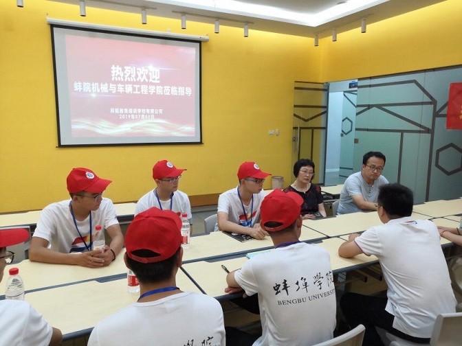 7月5日上午,机械与车辆工程学院由党总支书记王月英带队,到蚌埠市蚌山区绿地中心的邦妮教育集团看望暑期社会实践团队。