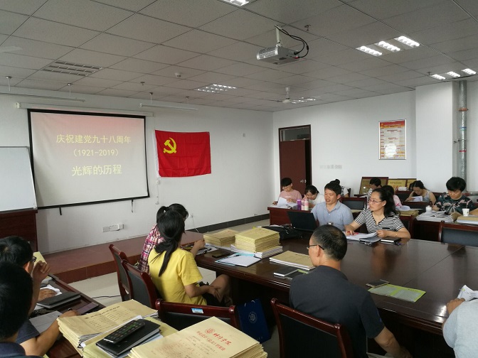 为了庆祝建党98周年,2019年7月18日下午,材料与化学工程学院教工党支部在院会议室举办了“主题党日”活动,活动由教工支部书记盛蒂主持,支部全体党员参加了活动。