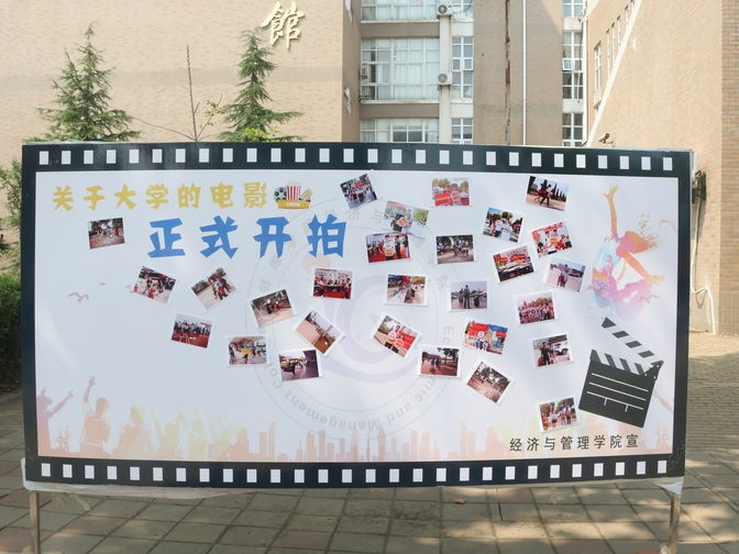 主干道上一块贴满照片的展板吸引了许多人驻足观看,展板的外观是一段胶卷的形状,上面写着“关于大学的电影正式开拍。”这是经济与管理学院策划的独特迎新方式。他们利用吉祥物和小饰品与新生进行合影,然后快速打印,配合提前做好的背景墙贴出来,展示新生与迎新人员的风采。(撰稿:校记者团章璇 宋雪 阚李荣;编审:黄灿)