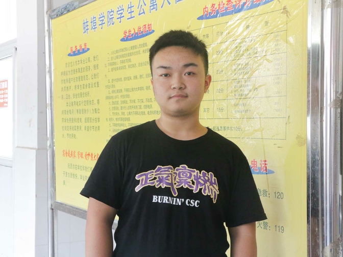 学校里到处都是家长拎着大包小包送孩子上学的身影,19级材料与化学工程学院的张文骏却是个例外。他家住距离蚌埠很远的池州,却早在五号就独自一人前来学校报到。他虽是个“02后”,但却有着一颗成熟独立的心,曾有过两年的住校经历。或许和大多数人一样,都想早一点“摆脱”父母的管束,所以在填志愿时特地选了离家比较远的大学。但此次的独自出行,各方面都要自己动手的生活体验,却让他体会到了父母面面俱到的照顾他生活起居的辛苦。“大学是锻炼一个人各方面能力的地方,相信未来四年大学会教会我如何更好地在社会上生活,”张文骏面露腼腆认真地说道。(撰稿:校记者团张菊 常瑶 张宗贤;编审:黄灿)