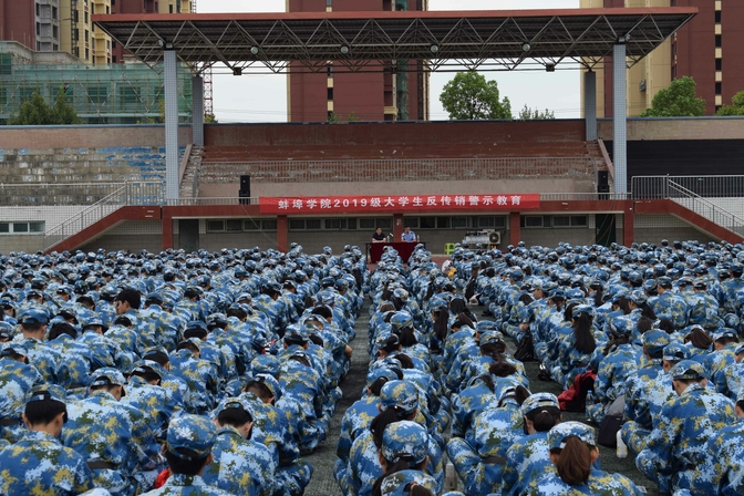 9月16日上午,学校在第一运动场举行2019级新生反传销警示教育,蚌埠市市场监督管理局局长苏畅应邀前来授课,武装部副部长陈重主持教育活动。