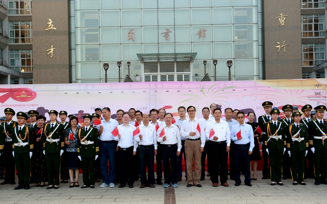 按照千万大学生“青春告白祖国”工作部署视频会会议精神,结合我校实际,2019年9月30日,我校在图书馆广场隆重举行庆祝新中国成立70周年升旗仪式,党委书记刘泽功、党委副书记、院长长丁明、党委委员郑桂富、纪委书记赵大为、党委委员郭有强出席仪式,各部门主要负责人,各教学院部党组织书记、团总支书记,马克思主义学院全体教师,民主党派代表,2019级新生辅导员、学生干部代表、2019级全体新生参加仪式。