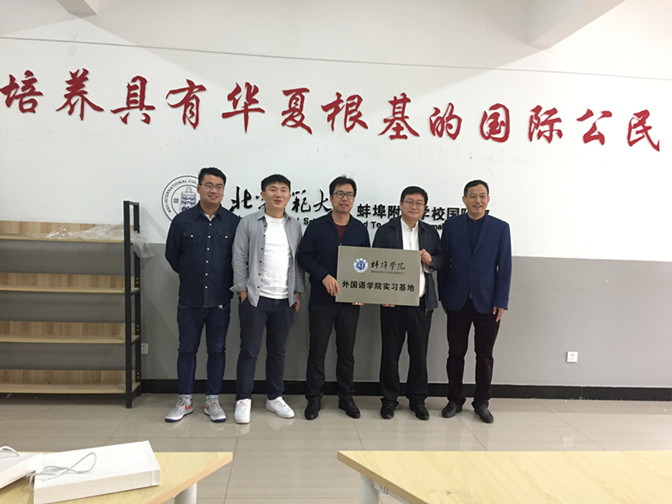 10月9日上午,蚌埠学院外国语学院与北京师范大学蚌埠附属学校国际部实践教学基地签约暨挂牌仪式在北京师范大学蚌埠附中国际部会议室举行。北师大蚌埠附属学校国际部校长卢斌、外国语学院院长赵生学、翻译专业负责人张万年老师等出席仪式。北师大蚌埠附中国际部正式成为蚌埠学院外国语学院学生实习基地。
