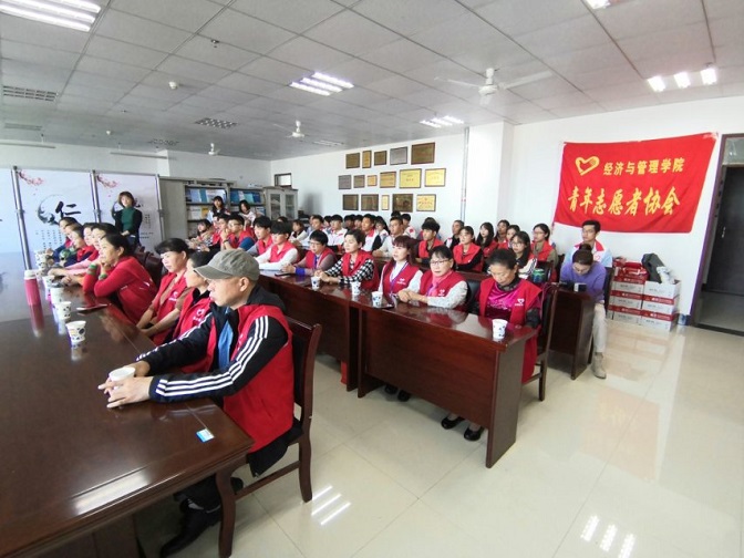 为培养青年大学生勤俭节约,乐善好施的优良品质,10月20日上午,经济与管理学院青年志愿者协会在院会议室开展了军训服捐赠公益活动。“中国好人”、安徽省劳动模范、蚌埠市残疾人联合会副主席李东,蚌埠市希望之光爱心协会会长陆鑫,老年大学代表解广英等应邀出席活动,经济与管理学院、食品与生物工程学院、电子与电气工程学院、文学与教育学院青年志愿者协会和蚌埠市爱心协会部分成员代表参加活动。活动由经济与管理学院党总支书记杨晓秋主持。