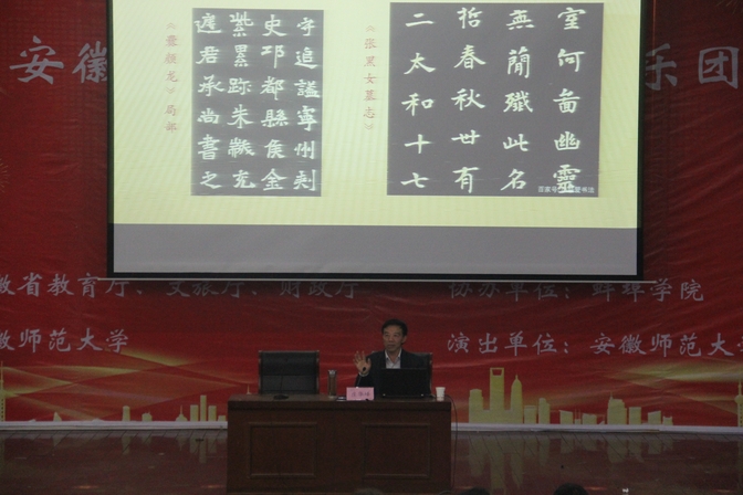 2019年10月25日下午,“书法与中国传统文化”专题讲座在我校学术报告厅举办。讲座由蚌埠学院大学生艺术教育中心和书法俱乐部联合主办,主讲嘉宾为安徽师范大学二级教授庄华峰。