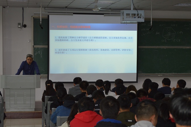 为引导更多学生积极融入到学科竞赛等课外科技活动、激发学生科技创新意识,提高学生实践创新能力,10月30日下午,应电子与电气工程学院邀请,安徽工程大学王冠凌教授来我校作了题为《科教协同、强化实践、激发创新》专题讲座。电子与电气工程学院学科竞赛指导教师、辅导员,以及包括电子科技创新协会学生在内的近300名学生聆听了讲座。