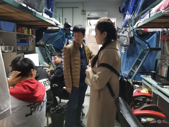 本次检查的内容主要有宿舍卫生状况、大功率电器使用情况、宿舍设施损坏情况等,检查覆盖每一间宿舍,做到不留空白、不留死角。走进寝室,梅红为同学们送上亲切的问候,耐心地提醒大家要注意寝室用电安全及日常防火防盗,提高安全警惕,注意自身生命财产安全。孙礼俊强调迎接评估审核的重要性,并叮嘱同学要注意开窗通风、保持个人卫生,营造良好的宿舍环境,要以最热情饱满的姿态迎接评估专家的查寝。在走访过程中各级辅导员也对大多学生在寝室不忘学习,苦练专业技能的行为大加赞赏,希望同学多学习,多读书,不断提高自身素质,建立起扎实牢固的知识体系,向即将到来的评估专家展现我校学子的风采!此次检查情况良好,大多宿舍环境干净整洁、无重大安全隐患,个别宿舍设施有损坏的也立刻进行了报修。