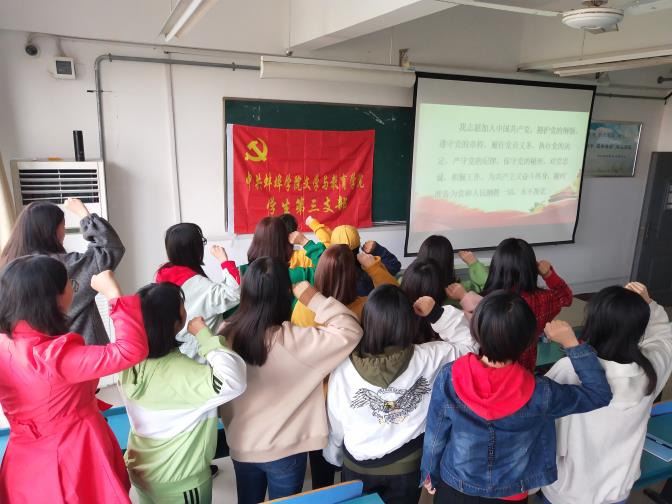 为深入贯彻落实学院“不忘初心、牢记使命”主题教育实施方案,11月6日,文学与教育学院学生第三党支部于教学楼b314开展了支部书记上党课活动。支部书记黄宇琛围绕“不忘初心,牢记使命”这一主题,开展主题党课教育。