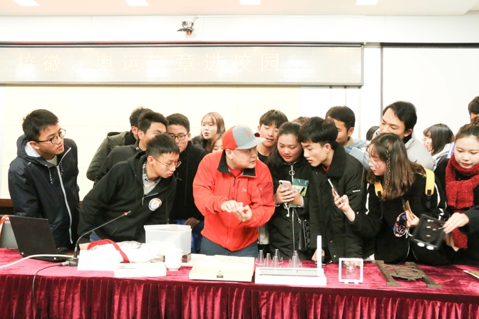 12月1日,以“徽章由小见大,文化源远流长 ”为主题的校徽、奥运徽章进校园活动在行政楼视频会议室举行。主讲嘉宾为北京收藏家协会理事、徽章委员会主任、北京大学党委宣传部教师肖枫和北京收藏家协会、体育收藏品专业委员会副主任王舒。蚌埠学院党委委员、宣传部长李荣主持活动,蚌埠学院100余名学生代表参加活动。