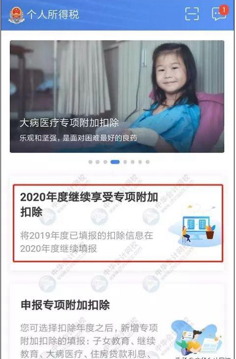 打开并自动更新个人所得税APP,点击2020年度 继续享受专项附加扣除。