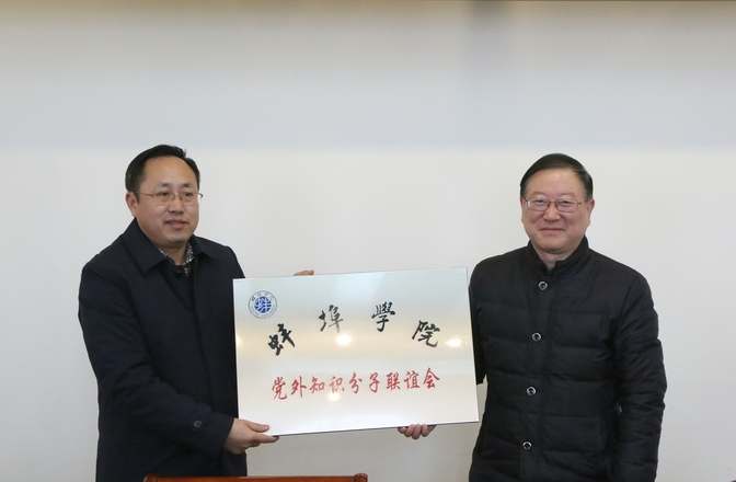 12月19日,蚌埠学院党外知识分子联谊会成立大会暨第一次会员大会在行政楼第二会议室隆重召开。省委统战部发来贺信。省委教育工委组干处副处长查晓陆到会指导。党委书记刘泽功,党委委员、纪委书记赵大为,党委委员、宣传(统战)部长李荣,党委委员、组织部长邵峰,党委委员、党政办主任史毓新,纪委副书记王庆山,校知联会全体会员和各民主党派学校基层组织代表出席会议。李荣主持会议。