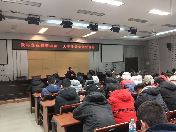 12月18日下午,材料与化学工程学院在行政楼二楼视频会议室举办“我与企业家面对面—大学生就业创业指导”讲座。本次“我与企业家面对面”系列活动邀请的是蚌埠市神舟机械有限公司副总经理史正波,讲座由材化学院党总支书记徐燕主持,材化学院和机械学院毕业生代表参加了讲座。