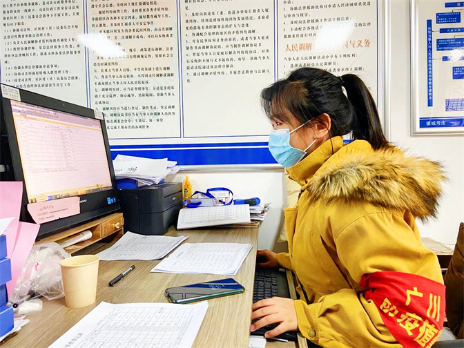 2018级数字媒体1班的高欣欣同学于2020年2月向她所居住的社区递交了“请战书”,“我的爸爸是一名社区工作者,工作在防疫工作的一线,我想和他并肩战斗。”每天早晨六点,高欣欣同学和她的父亲便开始了一天紧张忙碌的工作:去各个小区门口巡查、摸排居住人员情况、为居民采购必要的生活物资等。完成这些工作后,高欣欣同学并没有休息,而是继续在小区门口执勤,一直等到夜里十二点,她的父亲完成一天的工作后父女俩一起回家。