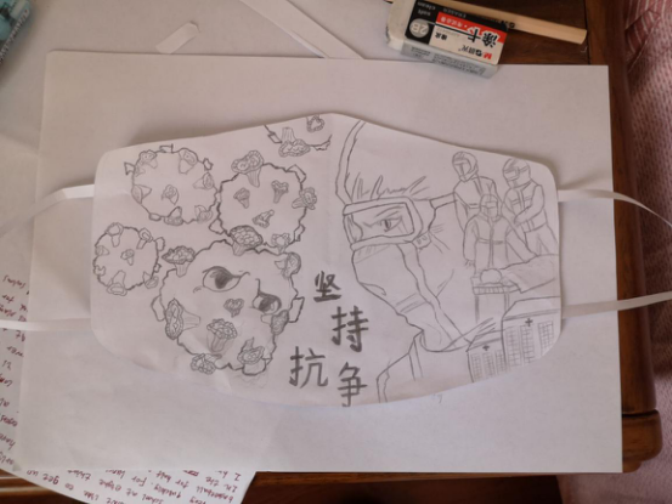 本次主题活动由学生自主创作,发挥专业所学的技能,形式多样,内容丰富,创作“抗击疫情”漫画,宣传疫情防护小知识,学习了解本次疫情的诱因、传播途径及防治措施;“凛冬散尽,春暖花开,山河无恙,你我皆平安”的书法作品,寄托着对战斗在疫情第一线的人员的美好好祝愿;口罩造型的手工作品,用直观的形象,宣传防护小知识,倡导师生注意健康和生命安全。通过一幅幅生动有趣的作品,呼吁同学们保护自己,拒绝病毒,向最勇敢的医护逆行者致敬。这次活动在线上展开,以寝室为小组,在QQ群上交流、展示,留下深刻的印象。