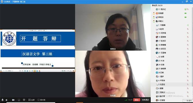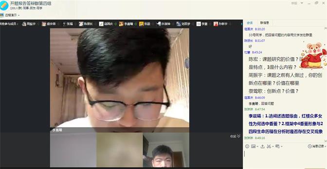 三是进行预演,有备无患。因是首次组织线上开题,缺乏经验积累,为了保证工作的顺利性和有效性,各专业于学生进群后,组织师生对开题答辩的形式和内容进行了预演,确保正式答辩能够顺利进行。