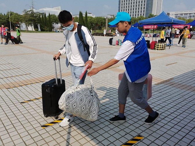 2020年的新生报到,不同于往年的父母甚至全家的“一路护航”,所有新生的家长都只能止步于校门口。守着校门,温情目送,不舍离别。