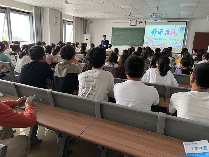 秋风送爽,丹桂飘香,外国语学院迎来了新一届学子的到来。疫情防控下的2020级新生入学教育简约而不简单。从9月5日专升本新生报到,到2020级本科生顺利开始专业学习,外国语学院精心谋划、科学安排,从熟悉校园、熟悉专业,到适应新的生活、新的学习方式,并将疫情防控教育融入其中,上好2020级新生的“大学第一课”,截至9月18日圆满完成入学教育各项工作。