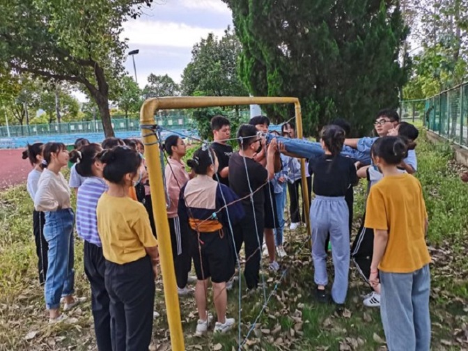拓展训练通常利用创设的特殊情境,培养团队学员之间“积极沟通、相互信任、团结协作”的意识,实现“磨练意志、陶冶情操、完善人格、熔炼团队”的训练目的。“信任背摔”“穿越电网”等拓展项目增进了参训学员的相互信任度。训练过程中,学员们相互鼓励,争先挑战自我。训练也让学员们明白良好的沟通对团队合作的重要性、团队目标的实现需要全体成员齐心协力、个人成功必须建立在团队其他成员的共同努力与共同支持的基础之上。