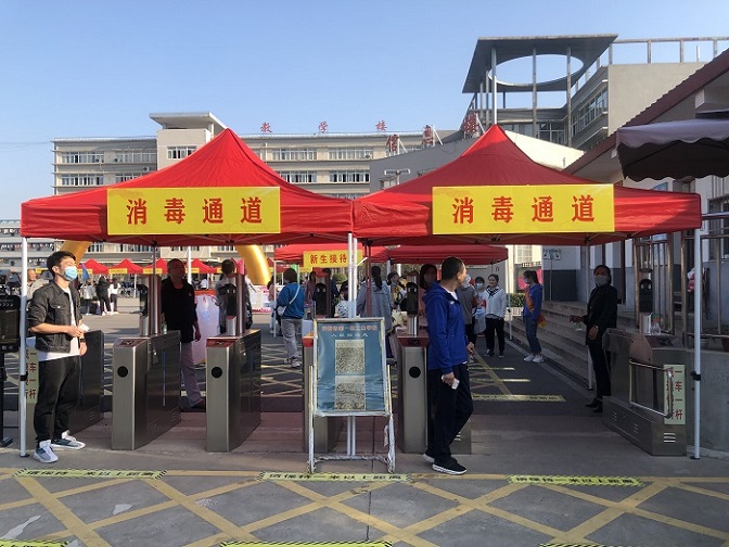 早上7:00,全体工作人员就已经按照到岗,在大门口摆开阵势。为保证新生报到顺畅,在新生入学前,应用技术学院建立了新生QQ群,让新生提前知晓报到流程、专业班级、到校路线等。报到现场,每个人都按规定佩戴口罩,新生进入校门时有序通过安康码查验、体温检测、酒精消毒等环节,无异常方可前往新生接待处扫描“通信大数据行程卡”二维码,并提交《近14日健康情况监测及符合返校条件承诺》,进行现场二次核验,最后前往班主任处报到登记,有序进入学生公寓。