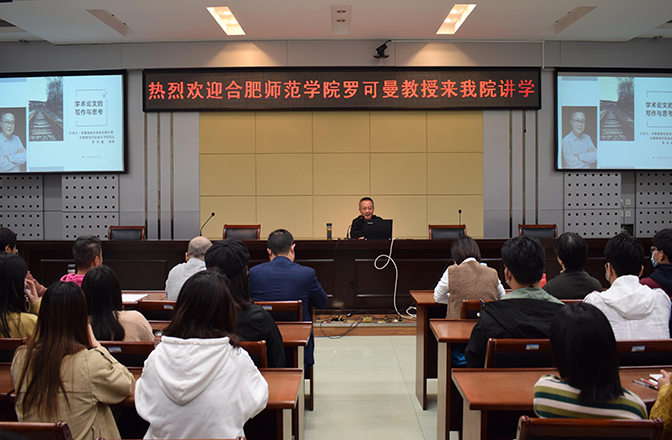 本次讲座邀请合肥师范学院音乐学院院长、安徽省音乐家协会副主席罗可曼教授主讲,题目为“学术论文的写作与思考”,学院全体教师及2017、2018级音乐学专业学生现场聆听。罗可曼教授从学术写作的类别、方法、规范等方面入手,结合教师教科研、学生毕业论文写作,深入浅出地讲解了他在音乐专业学术论文写作以及指导本科毕业论文方面的独到见解,并以自己的代表作品为例进行了详细分析。教师从中学习到了开展教科研的宝贵经验,学生也收获了毕业论文写作方面的实用信息。