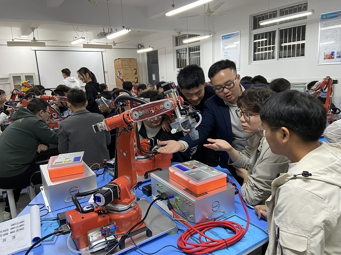 通过本次培训,教师们掌握了工业机器人新进设备的技术特点和使用方法,有利于教师更好开展机器人创新实验教学设计。学生们近距离接触工业机器人,了解其基本结构,进行了实践操作,专业学习热情大大提升。此次工业机器人新设备培训对进一步夯实机器人专业的课程实验教学、培养工程化应用人才,发挥重要作用。(撰稿:秦国威;编辑:黄灿;审核:杨安升)
