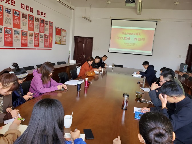为了深入学习贯彻习近平新时代中国特色社会主义思想,严格执行党的组织生活制度,丰富党员教育,建强党员教育师资队伍。2020年10月23日,艺术设计学院教工党支部开展党课教育活动,全体党员参加了会议。艺术设计学院教工支部书记刘青同志主持了会议,党总支书记李道亮围绕践行师德师风,提高党员宗旨意识,提升自我修养,作了“加强师德师风建设,做好党员好教师”主题党课。