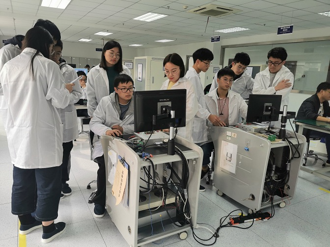 该班学生从本学期第7周起,由企业工程师集中授课,在企业学习《集成电路测试》、《电子元器件检测》两门企业技术课程,并开展课程实验。下学期,将在企业工程师和学校专业教师“双指导”下,开展毕业实习和毕业设计。通过企业技术考核、表现优秀的毕业生将由企业正式录用。