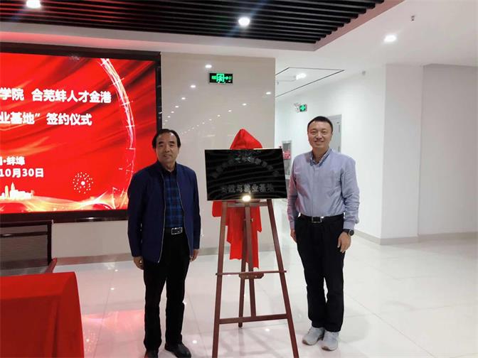 2020年10月30日下午,文学与教育学院实践与就业基地揭牌仪式在蚌埠合芜蚌人才金港有限公司举行。蚌埠科技局外国专家局副局长蔡芳;文学与教育学院党总支书记、院长吴长法,副书记夏春晓;上海人才金港集团总经理、蚌埠合芜蚌人才金港有限公司总经理吴昊等人出席活动。