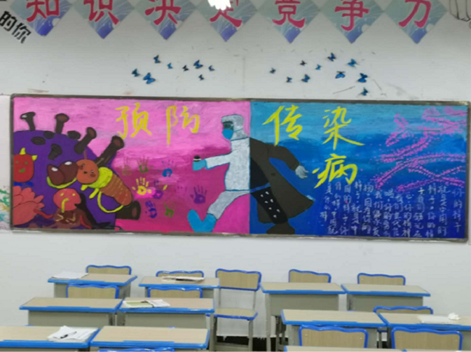 校园防疫工作一直以来都是应用技术学院所有工作中的重点内容,自从此项活动开展以来,各个班级同学在辅导员带领下开展了一系列活动,如开展“学习抗疫精神”的主题班会,观看以“防疫”为主题的视频,绘制“防疫”主题黑板报等。在本次活动中,经过全体同学的努力,班级黑板报变成了宣传“抗疫精神”的阵地,让学生在涂涂画画之间再次接受教育洗礼。