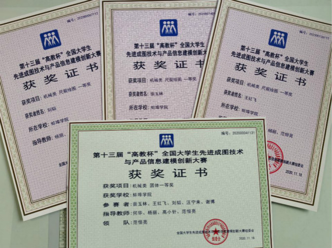 本次比赛在学校领导的关心指导和相关部门的大力支持下,由竞赛承办单位机械与车辆工程学院负责组建竞赛指导工作组,为竞赛培训工作打下了坚实基础。为备战此次国赛,赛事组于8月份开展了大赛动员,并于9月份举办了蚌埠学院第五届大学生先进成图技术与产品信息建模创新大赛校级选拔赛。通过选拔赛,遴选出的6位参赛队员经过不间断的刻苦备战训练,最终在此次国赛中取得团体一等奖的优异成绩,充分展现了我校学生在尺规绘图、计算机建模、3D打印和轻量化设计等方面的动手与创新能力,也体现了教师的教学水平和师生的团结协作精神。