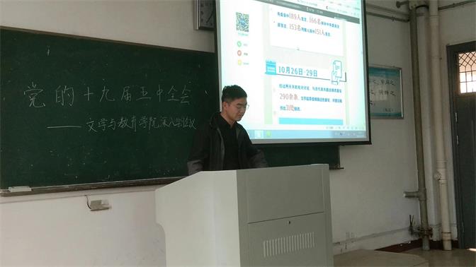 2020年11月19日中午12点30分,蚌埠学院文学与教育学院团总支在b栋教学楼122室开展深入党的十九届五中全会主题学习会议,文教院18级、19级和20级各班班长及团支书参与了本次会议。
