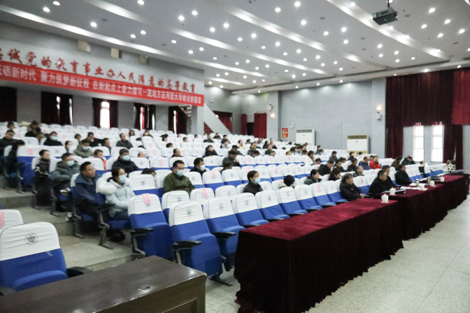 陈国龙在讲话中强调,要不忘社会主义办学初心,牢记培养社会主义建设者和接班人的使命。要在理想信念教育上见实效。大力推进习近平新时代中国特色社会主义思想进教材、进课堂、进头脑,引导学生树立共产主义远大理想和中国特色社会主义共同理想,立志肩负起民族复兴的时代重任。要在构建“三全育人”大格局上有提升。通过建立多元素、多样化的专业课程与思想政治教育融合模式,实现思想政治教育与专业知识体系教育的有机统一,实现思政课程显性育人功能与专业课程隐性育人功能的有机融合。要在教育途径和模式上有创新。以“十大育人”体系为基础,将思想政治工作融入教育教学全过程各环节,全面落实到质量标准、课堂教学、实践活动和文化育人中。