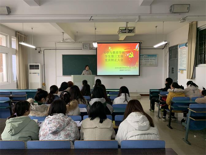 2020年12月2日,文学与教育学院学生第一、第二、第三党支部分别召开党员发展和转正大会,讨论关于肖正阳等共30位积极分子是否按期发展、柴茂等共13位预备党员申请转为正式党员的事宜。大会由各支部书记主持,出席人数符合要求。