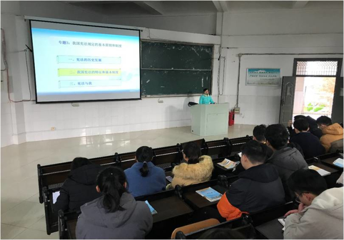 扎实做好宪法精神“进课堂”。马克思主义学院基础教研室多次召开集体备课会,研讨宪法精神“进课堂”。12月4日下午,教研室主任魏雪梅副教授做专题公开教学。魏雪梅老师以“我国宪法的基本原则和制度”为题,从宪法的历史发展、我国宪法的特征和基本制度、宪法和我三个方面,引导大学生领会宪法精神,理解宪法的本质。课后,魏雪梅老师还就宪法的适用等方面和同学们进行了深入的沟通和交流。通过学习,同学们进一步明确了宪法在国家政治生活和社会生活中的重要地位和作用,大家纷纷表示,一定要切实践行宪法精神,自觉维护宪法尊严。(撰稿:刘鑫;编辑:黄灿;审核:杨安升)