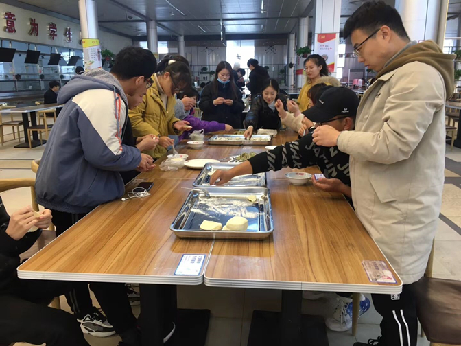 风一更,饺一笼。活动如火如荼地进行,同学们穿梭在面板和饺子馅之间,用沾满面粉的双手和扬起的笑脸,传递着源源不断的温暖。虽然同学们包出的饺子并不完美,或是胖得露馅,或是瘦得嶙峋,甚至味道也有一点欠缺,但是朋友陪伴在旁,一起迎着窗外冬日的暖阳,从热腾腾的锅里捞出翻滚的饺子,夹起来沾口香醋,和同伴对视一眼,一同咬下,又有谁不满足!待活动结束,打扫完卫生,同学们满足的目光中又都夹带不舍。这共同努力创造的饺子盛宴,足以成为同学们冬日里暖身又暖心的一道难忘回忆!(撰稿:侯迪;编辑:黄灿;审核:杨安升)
