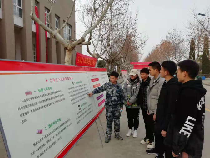 为贯彻落实全省2021年征兵准备工作任务部署电视电话会议精神,做好明年春季大学生征兵工作,12月28日,学校武装部组织八一社团学生开展2021年春季征兵报名活动。