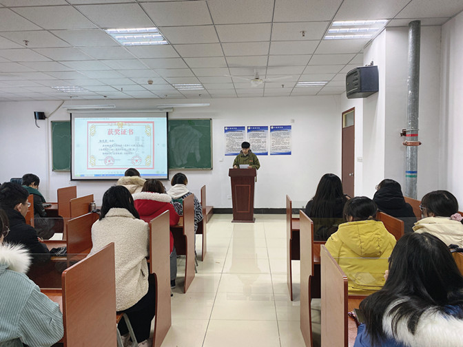 会上赵睿回顾了2020年度学院学风建设主要情况,对一年来外国语学院的同学们防疫不误学的勤奋好学给予充分肯定,对各级赛事中取得优异成绩的同学表示祝贺;同时为2020年全国大学生英语竞赛、2020“外研社·国才杯”全国英语写作大赛和2020“外研社·国才杯”全国英语演讲大赛等学科竞赛的三位获奖学生代表曹珺、杨光荥、常媛媛颁发获奖证书。