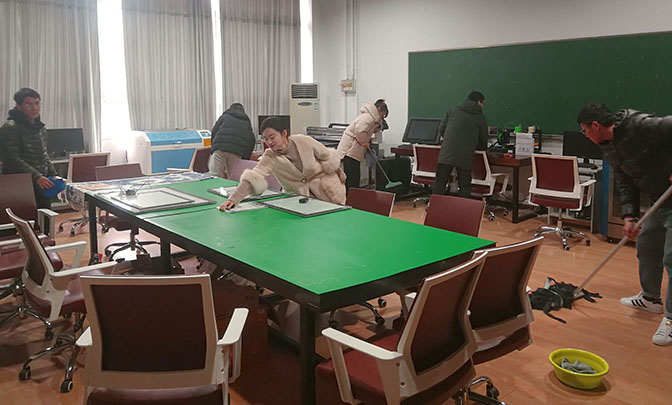 在这次活动中,志愿者们分工协作,擦拭公共区域宣传展板、标识牌、工作室仪器设备和清扫地面等,发扬不怕脏、不怕苦、不怕累的精神。大家干得认真细致,成为了艺术楼楼内的一道亮丽风景线。