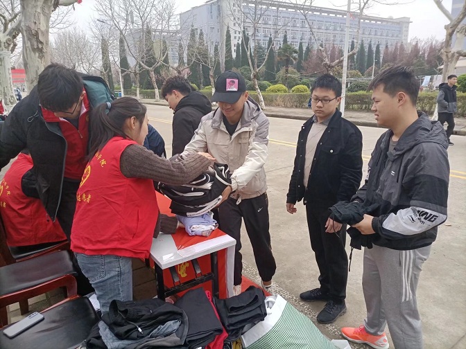 电子与电气工程学院青年志愿者协会于2021年3月20日在蚌埠学院主干道举办旧衣募捐活动。