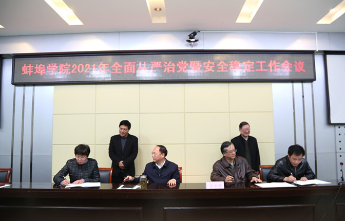 会上,还举行了《2021年落实全面从严治党主体责任责任书》、《蚌埠学院2021年意识形态工作责任书》、《蚌埠学院2021年安全稳定工作目标责任书》三项责任书签订仪式。(撰稿:王璇;编辑:黄灿;审核:杨安升)