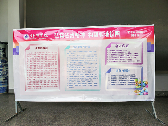 为增强学生的法制意识,提高学生的自我保护能力,营造文明、平安、和谐的育人环境,近日,蚌埠学院艺术设计学院团总支组织部分学生于艺术楼一楼大厅开展了“弘扬法治精神,构建和谐校园”教育签名活动。