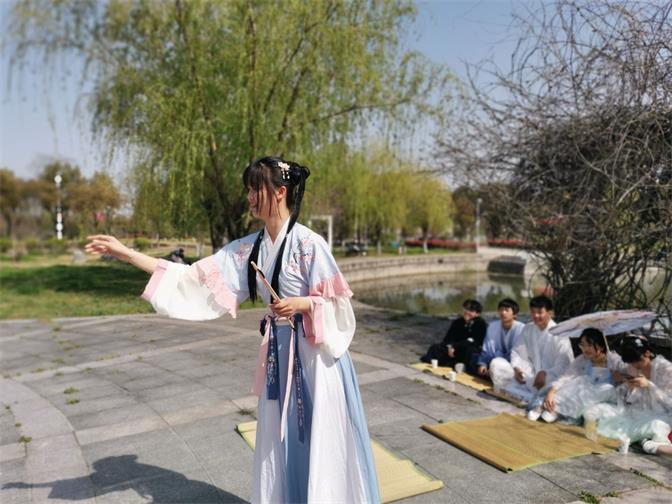 花朝节,是纪念百花的节日。为丰富校园文化生活,展示汉服的独特魅力,宣扬中华优秀汉服文化,3月28日,文教学院秋彤汉服社于学校行政楼湖畔举行花朝节踏春活动,汉服社指导教师毛星懿及全体社员参与活动。