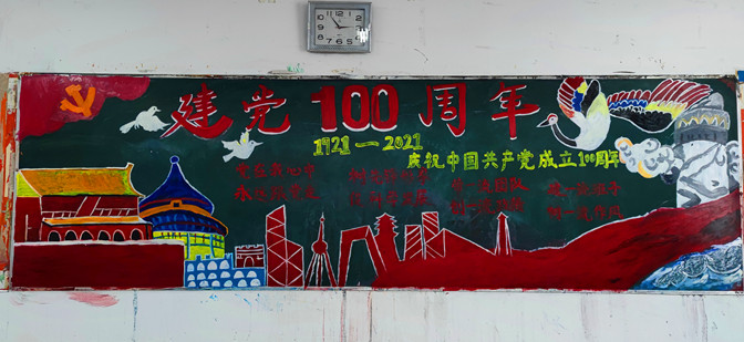 此次板报设计充分利用班级宣传墙,宣传了共产党一百年风雨兼程的艰苦奋斗精神,让学生得到爱国主义的宣传教育,引导学生不断增强民族自尊心、自信心和自豪感,为实现中华民族伟大复兴的中国梦而努力学习、不断进取!(撰稿:钱慧 戴静;编辑:黄灿;审核:杨安升)