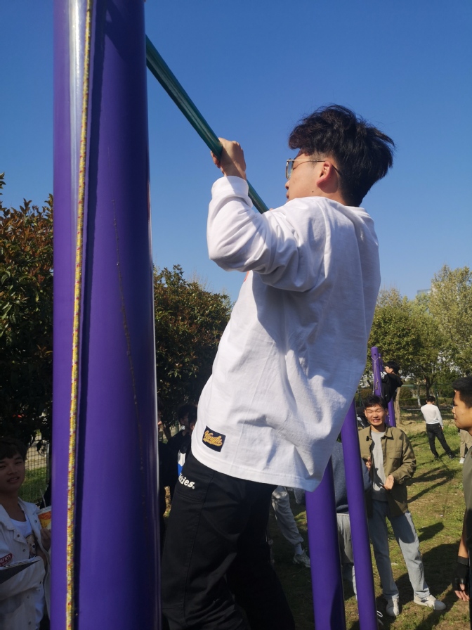 本次运动会共设有男生引体向上、女生一分钟仰卧起坐和男女一分钟跳绳三个比赛项目,每个学院参赛选手60人。上午8时30分,来自全校12个学院近700名学生齐聚第一运动场,在体育教学部全体教师的组织下,参赛学生整齐有序地开始慢跑徒手操等热身活动,随后,各项比赛如火如荼在运动场进行。