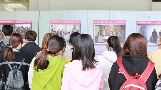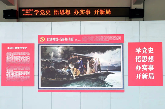 艺术设计学院党总支通过多方搜集、整理、遴选了六十余幅经典画作,反映了中国共产党成立以来不同历史时期的伟大时刻。筹备组对这些作品以翻拍或扫描的方式进行数字化记录,最终打印成幅进行展览。