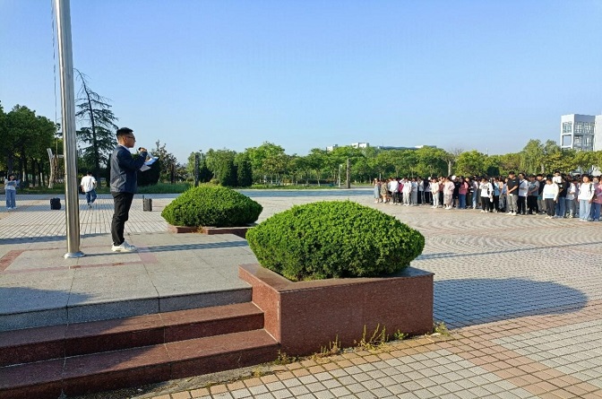 5月10日早晨7时,迎着初夏第一抹阳光,经济与管理学院在学校图书馆前广场举行庄严而隆重的升国旗仪式。经济与管理学院团总支负责人蔡德洪老师、经济与管理学院全体学生干部以及20级全体学生参加本次升旗仪式。