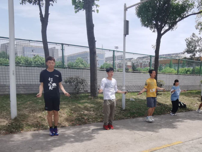 为了进一步提高同学们参加阳光体育运动的积极性,丰富同学们的校园文化生活,促进形成良好的体育锻炼习惯和全员参与的群众性体育锻炼的良好风气。5月6日起,材料与化学工程学院和体育教学部组织学生参加全国大学生跳绳比赛。